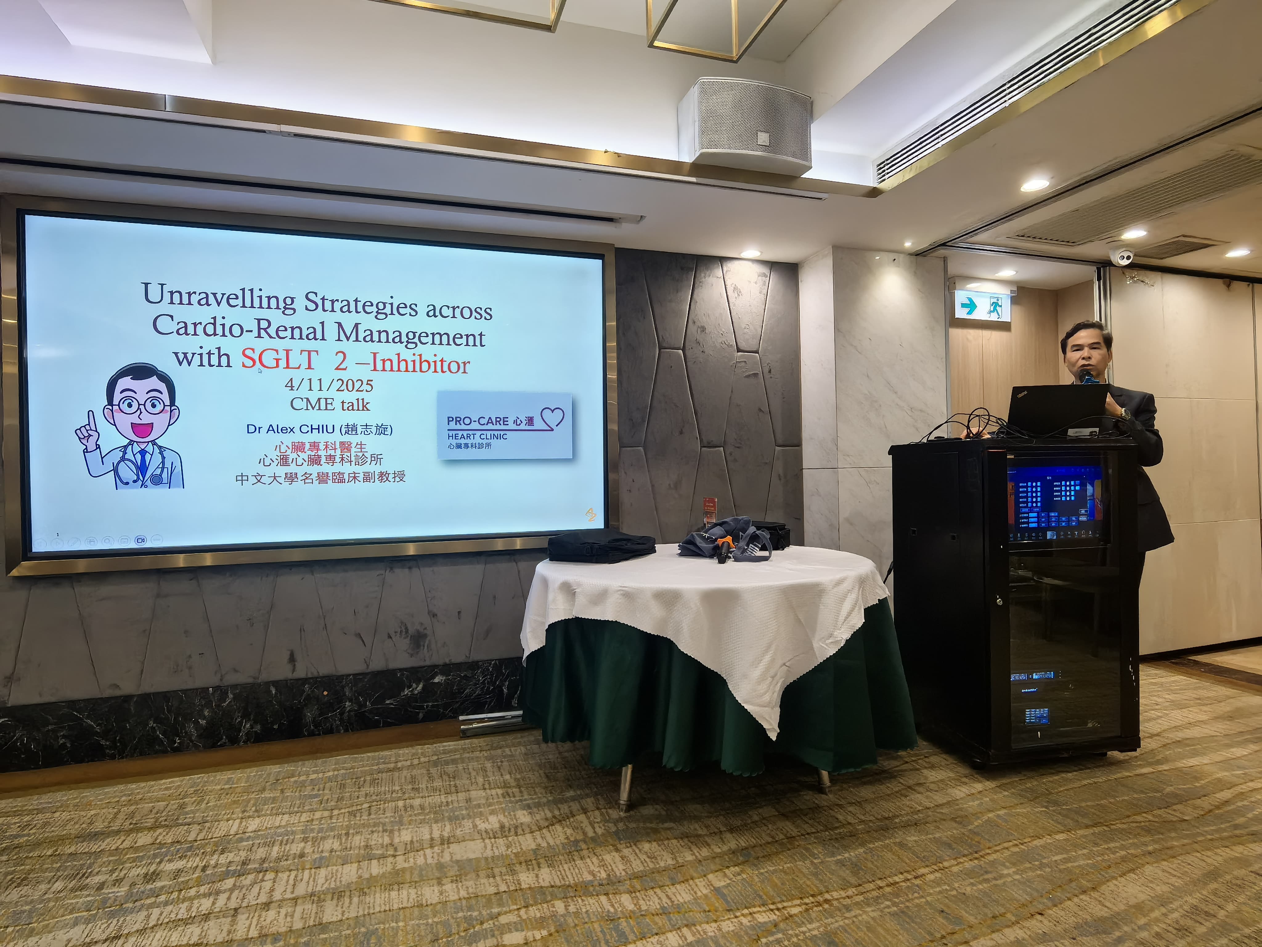 2025年11月4日,香港醫療衛生管理學會舉辦了一場以 「SGLT2抑制劑在心腎疾病管理的臨床應用」 為主題的圓桌會議,由心滙心臟專科診所趙志旋醫生及麥耀光醫生擔任主講,現場共有超過30位普通科醫生參與,交流氣氛熱烈。